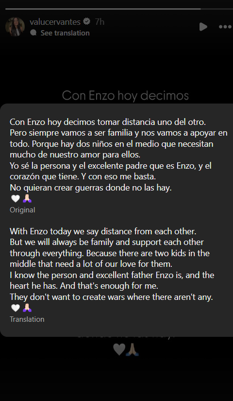 "Because there are two kids in the middle that need a lot of our love for them. I know the person and excellent father Enzo is, and the heart he has. And that's enough for me. They don't want to create wars where there aren't any."