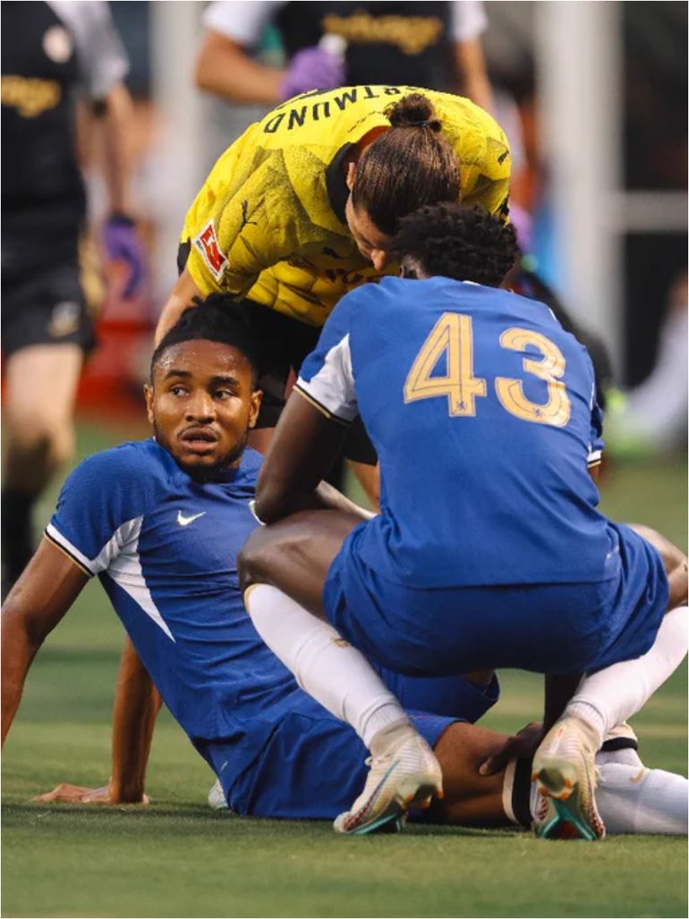 Chelsea started on a bright note at the Soldier Field in Chigaco but were forced into an early substitution when new signing Nkunku went down.