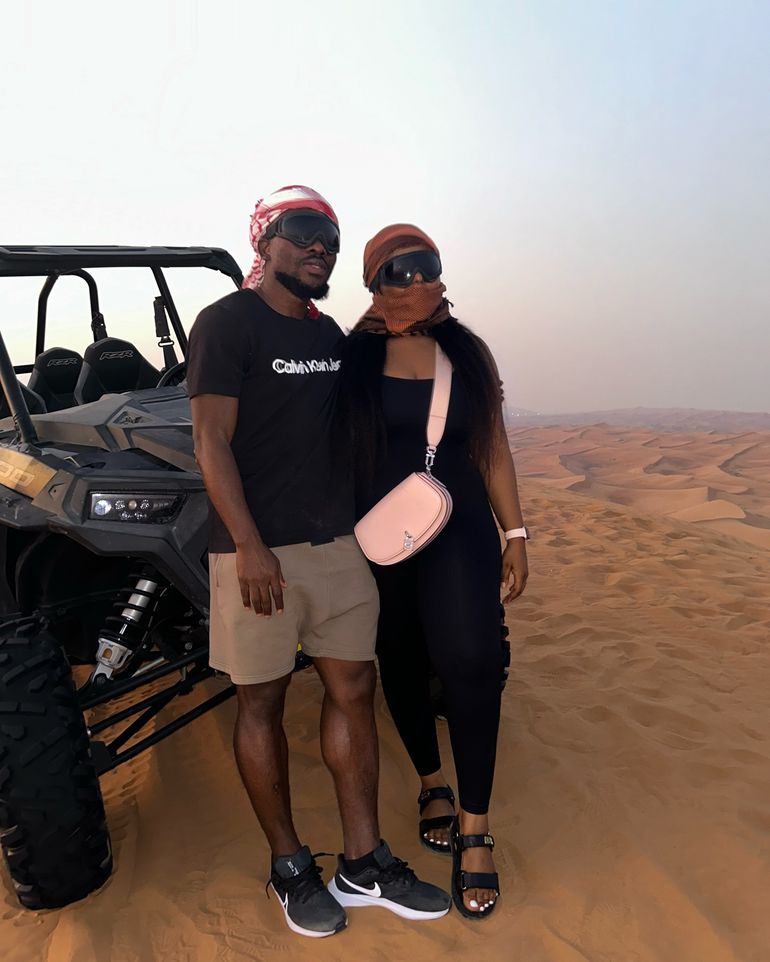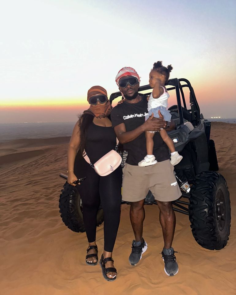 In the photos, Egbuchulam posed in the desert with his wife and daughter.