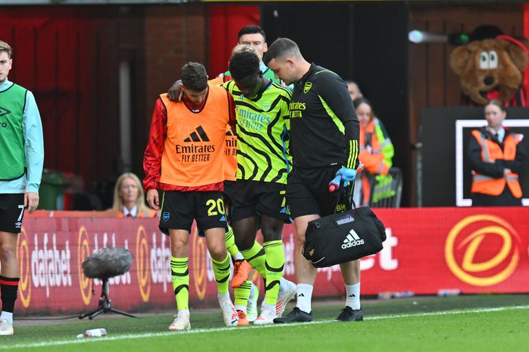 Bukayo Saka limps off against Bournemouth || Credit: Imago