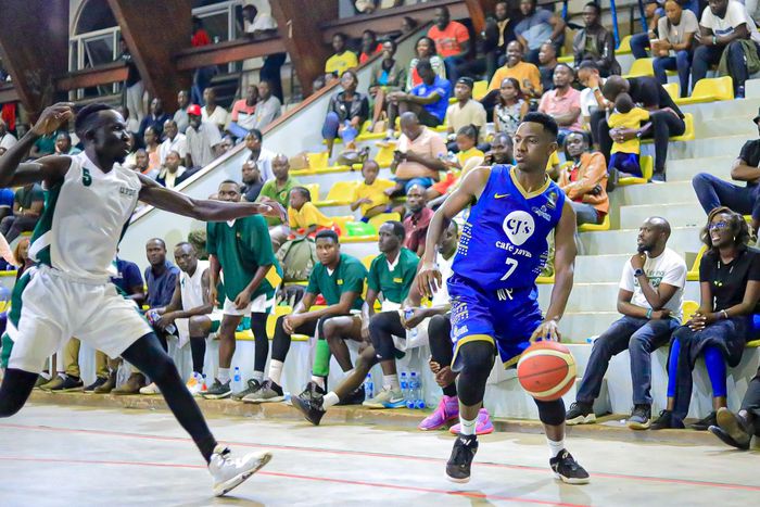 City Oilers guard Ivan Muhwezi dribbles past Daniel Emong during Friday's game /NBL Uganda image