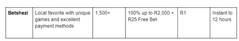 Betshezi: Local favorite with unique games and South African-friendly payment methods.