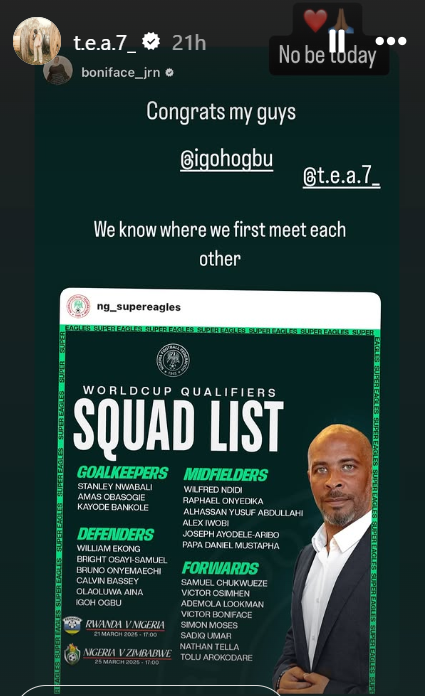 Boniface couldn't help but express his pride and nostalgia after taking to his Instagram story to react.