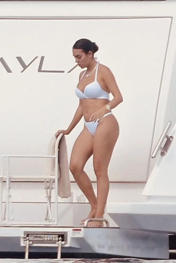 According to the Sun, Ronaldo flaunted his amazing body in swimming trunks while Georgina looked stunning in a bikini.