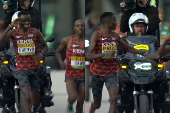 During the World Athletics Road Running Championships in Riga, Ebenyo displayed an incredible gesture by saluting his teammate, Sebastian Sawe, as Sawe overtook him to claim the gold medal.