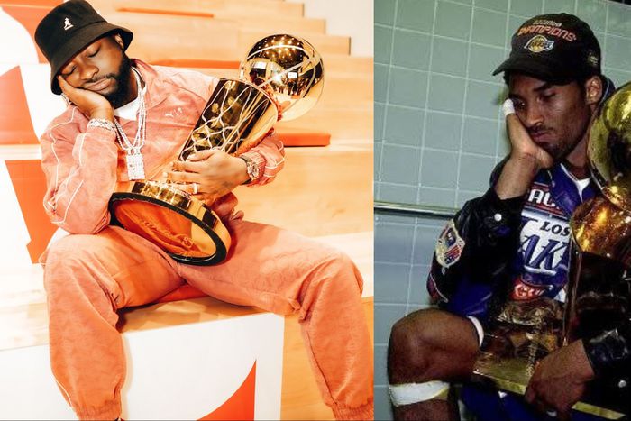 Fans of Davido noticed the similarities in his pose recreating the iconic Kobe Bryant after winning the title in 2002.