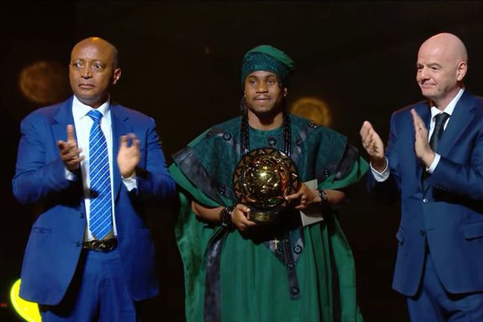 Ademola Lookman has been crowned a winner at the prestigious CAF Awards held in Marrakech, Morocco, and the Confederation of African Football has playfully urged the Nigerian star to "do shakara".