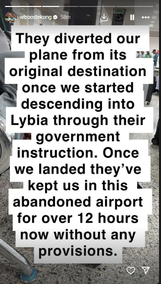 Ekong said, "They diverted our plane from its original destination once we started descending into Libya through their government instruction.