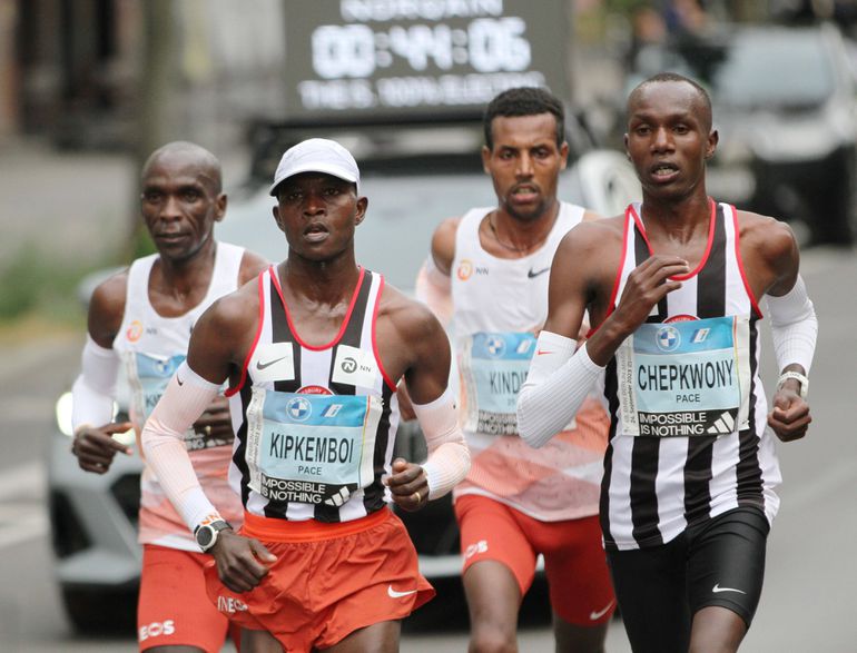 With just over 10 kilometres remaining, Kindie dropped off the pace and eventually withdrew, followed by Chepkwony, who shared a fist bump with his NN Running Team training partner.