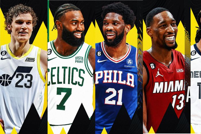 Philadelphia 76ers center Joel Embiid, Boston Celtics guard Jaylen Brown, Miami Heat center Bam Adebayo, Milwaukee Bucks guard Jrue Holiday, Chicago Bulls forward DeMar DeRozan, New York Knicks forward Julius Randle and Indiana Pacers guard Tyrese Haliburton.