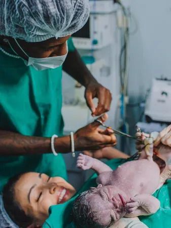 The Brazilian is shown in one photo cutting his son's umbilical cord, and in the second, he is joined by his 26-year-old partner Estela Braga for a family selfie.