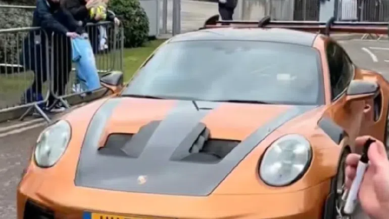 The Sun reports the former Borussia Dortmund striker was recently spotted cruising out of City’s training ground in a brand-new, orange Porsche 911 GT3, sending fans into a frenzy on social media.