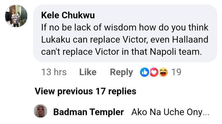 Fans have taken to social media to express their frustration. One commenter on Facebook wrote, “If no be lack of wisdom, how do you think Lukaku can replace Victor? Even Haaland can’t replace Victor in that Napoli team.”