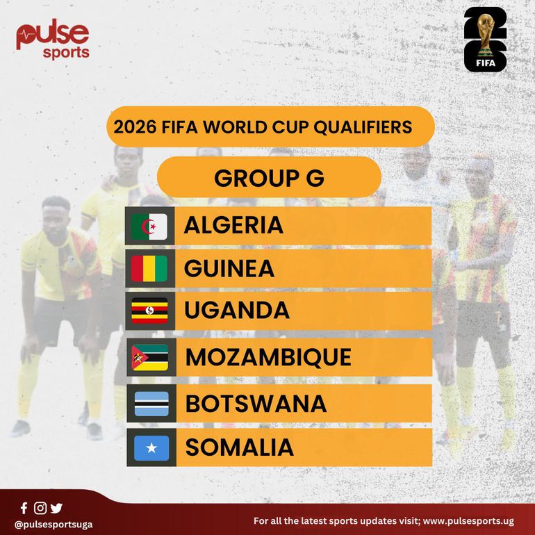 Uganda was picked from Pot 3 by African legend Jay Jay Okocha with Guinea, Botswana, Mozambique and Somalia making up the rest of Group G.