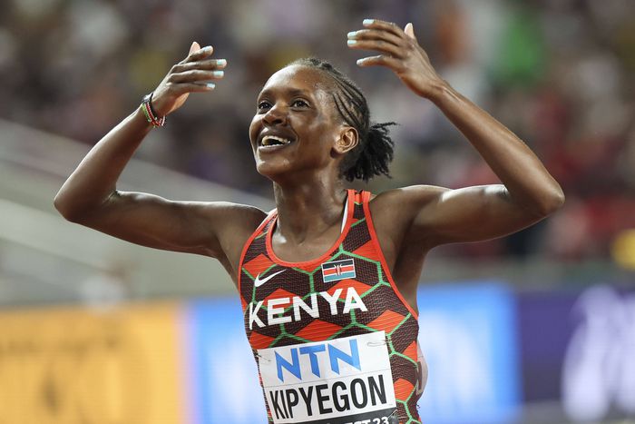 Kipyegon enjoyed the 2023 season, going unbeaten in the 1500m and breaking the 1500, 5000m and one-mile world records. She was also on fire at the World Championships in Budapest, Hungary where she bagged gold in both the 1500m and 5000m.