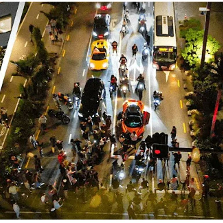 Adesanya was impressed as he took his two UFC belts into a supercar while a convoy of five other cars and 6 superbikes followed.