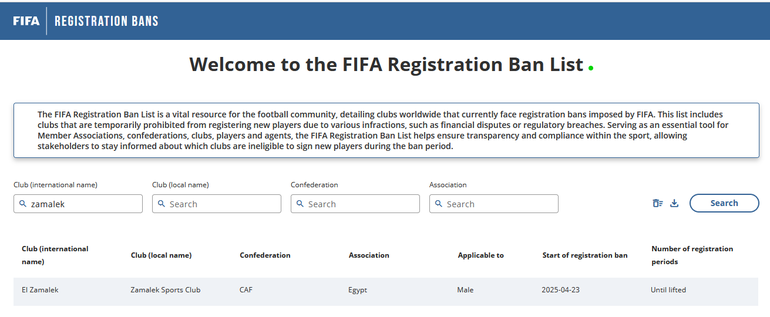 Zamalek have a rich long history of receiving transfer bans from the world football governing body.