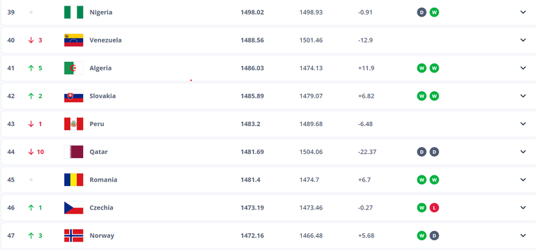The new list has also seen some African teams move up some places in their ranking, with Algeria, Congo, and Burkina Faso taking some steps up the table.