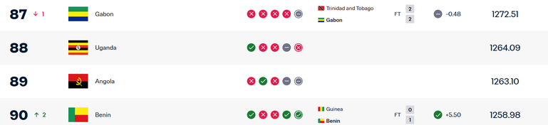 This is because none of the teams around them did enough to dislodge them at a time when they were not playing with Benin getting close after moving to position 90, having jumped two places, thanks to their 1-0 win over Guinea.