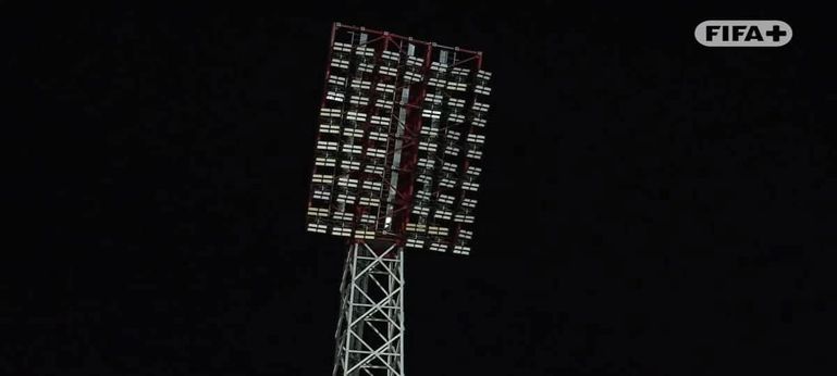 But in the 20th minute, part of the pitch was plunged into darkness after one of the floodlight towers failed. The referee stopped play, forcing everyone into a tense half-hour wait.
