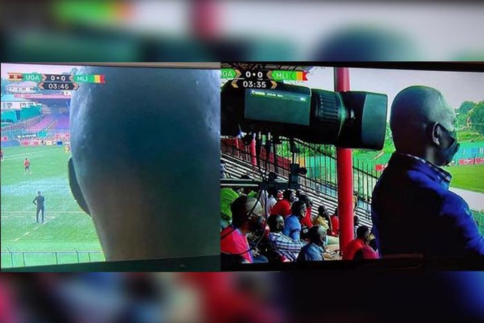 An unknown man blocks the broadcasting view in the game between Uganda and Mali at Kitende in 2021|COURTESY