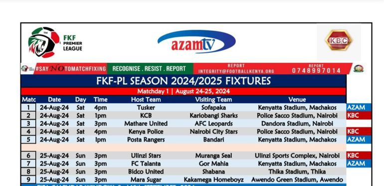 Record FKFPL champions Gor Mahia will begin their quest to defend their league title when they face FC Talanta on Sunday 25th August, the day after 2024/25 season commences.