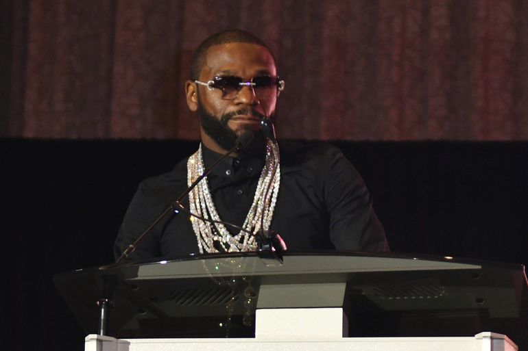 Boxing legend Floyd 'Money' Mayweather flexes over N750m on white gold chain made of 8,500 diamonds
