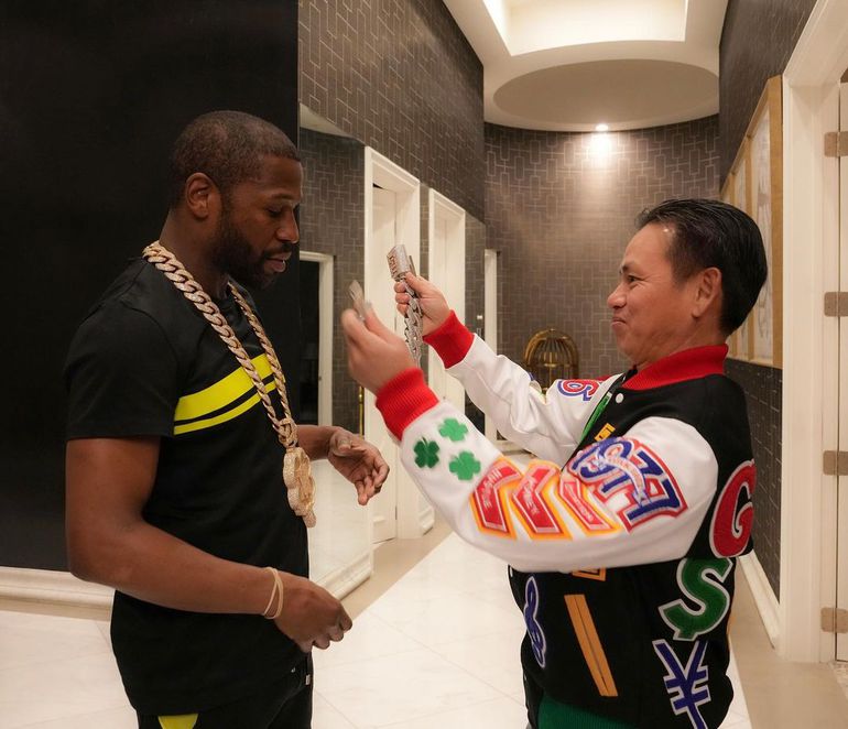 In addition, as a brooch, it has diamond links with the letters 'TMT', referring to 'The Money Team', which is the boxer's fashion brand.