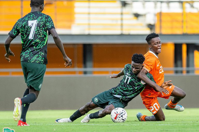 In the first of two international friendly games played at the Stade Félix Houphouët Boigny in the centre of the Ivorian city, the Flying Eagles defeated the hosts, the Young Elephants of Cote d'Ivoire, 2-0.
