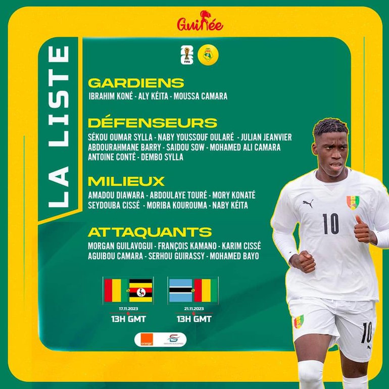 Guinea's squad to face Uganda