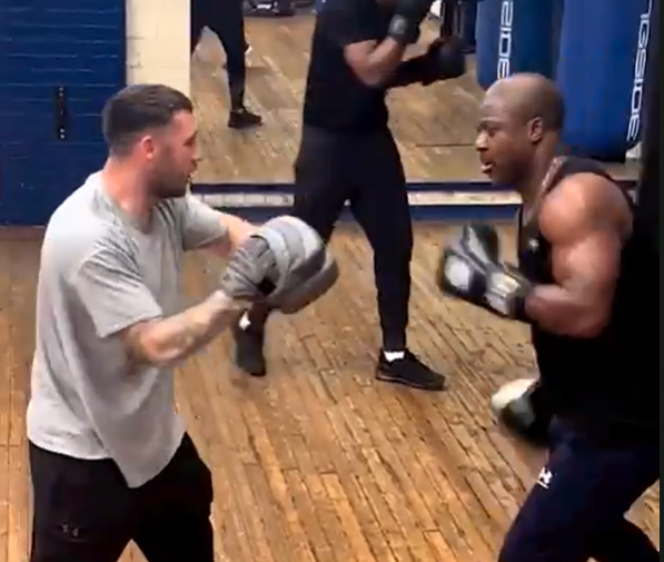 The 40-year-old was spotted in the gym looking built like a heavyweight and hitting the pads with so much tenacity.