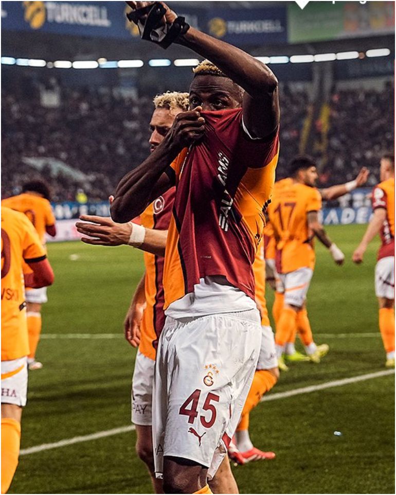 Galatasaray celebrated Victor Osimhen's stellar performance after the Nigerian striker scored twice in their 2-1 victory over Rizespor in the Turkish Super Lig.