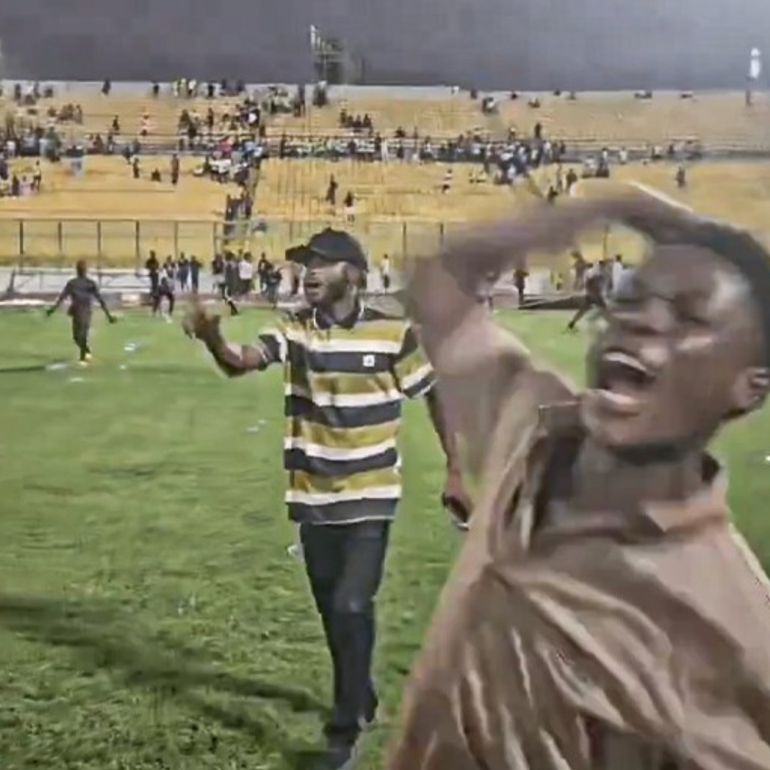 Some fans can be seen damaging items inside the stadium in videos that have gone popular on social media, while others are seen throwing water bottles onto the field.