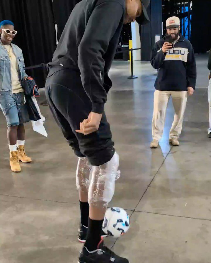 In the footage, Antetokounmpo—known as the "Greek Freak" for his extraordinary athleticism on the court—can be seen juggling a soccer ball with ease, wearing knee braces and casual athletic wear.