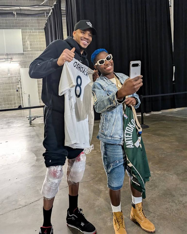 The interaction between Oshoala and Antetokounmpo was at the game between the Golden State Warriors and the Milwaukee Bucks.
