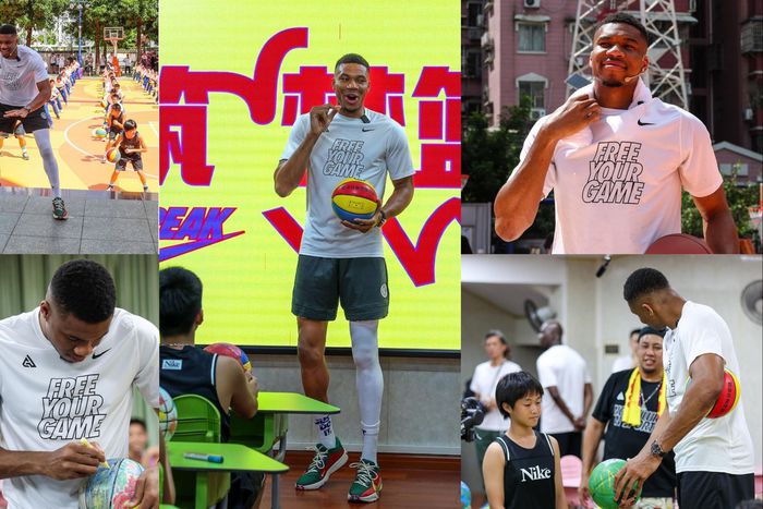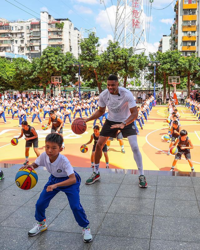 Giannis Antetokounmpo was impressed and vowed right away to donate his old shoes during his next trip to China after learning that the newly donated court was a part of Nike's "new refurbished sneaker" program, where the plastic granules used were processed from the children's old shoes in an eco-friendly manner.