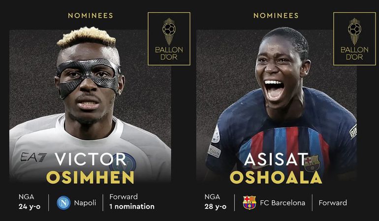 Nigerian football stars Victor Osimhen and Asisat Oshoala were nominated for the Men & Women's Ballon d'Or awards respectively, in a historic feat.