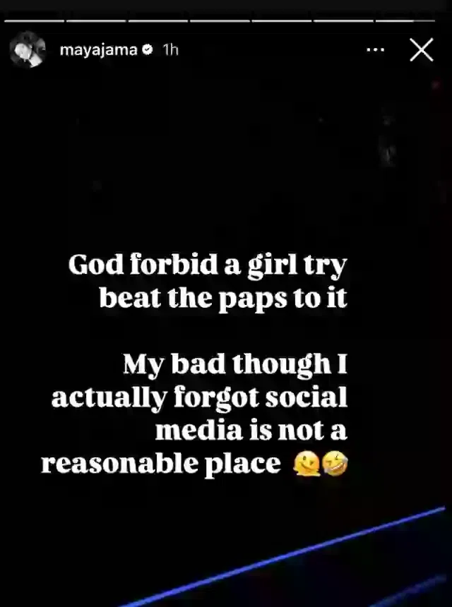 In a now-deleted Instagram Story, the Bristol-born star wrote as reported by LAD Bible, “God forbid a girl try beat the paps to it. My bad though I actually forgot social media is not a reasonable place,” expressing her frustration with the invasive attention.