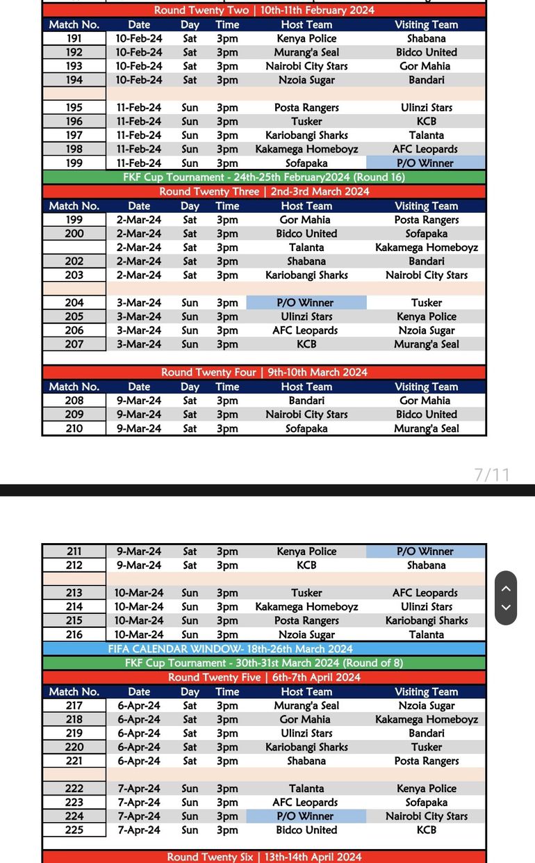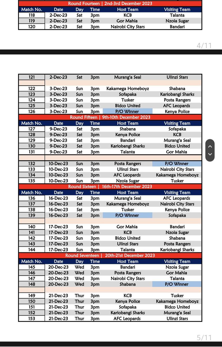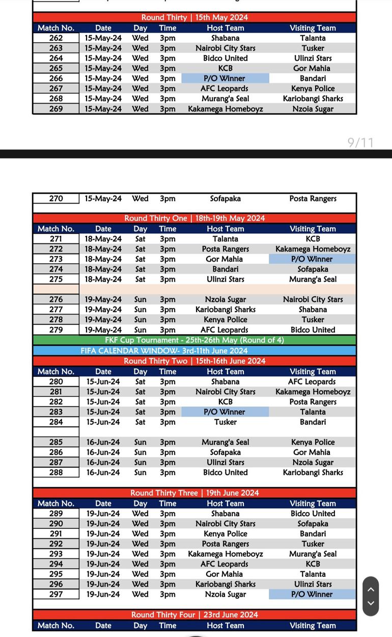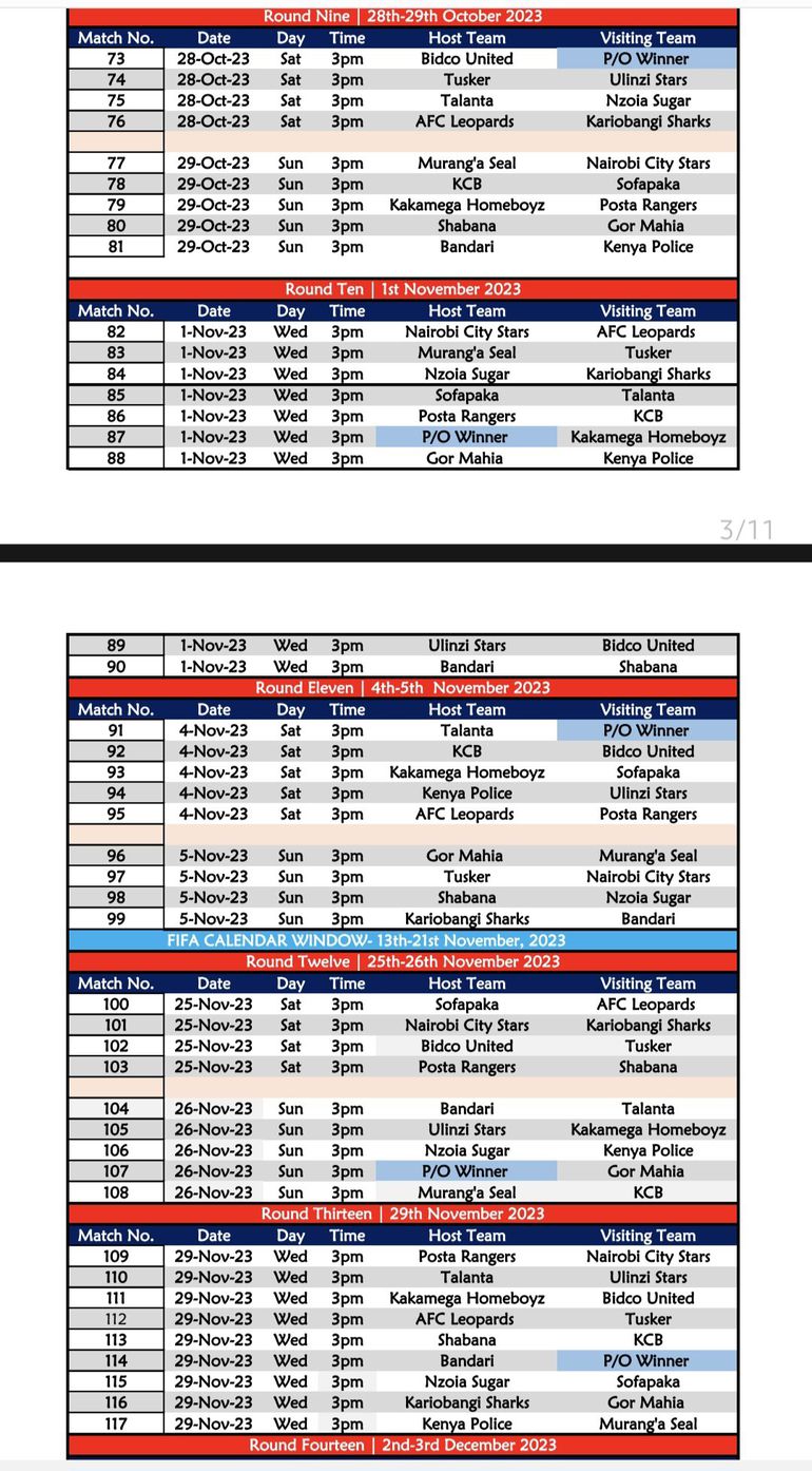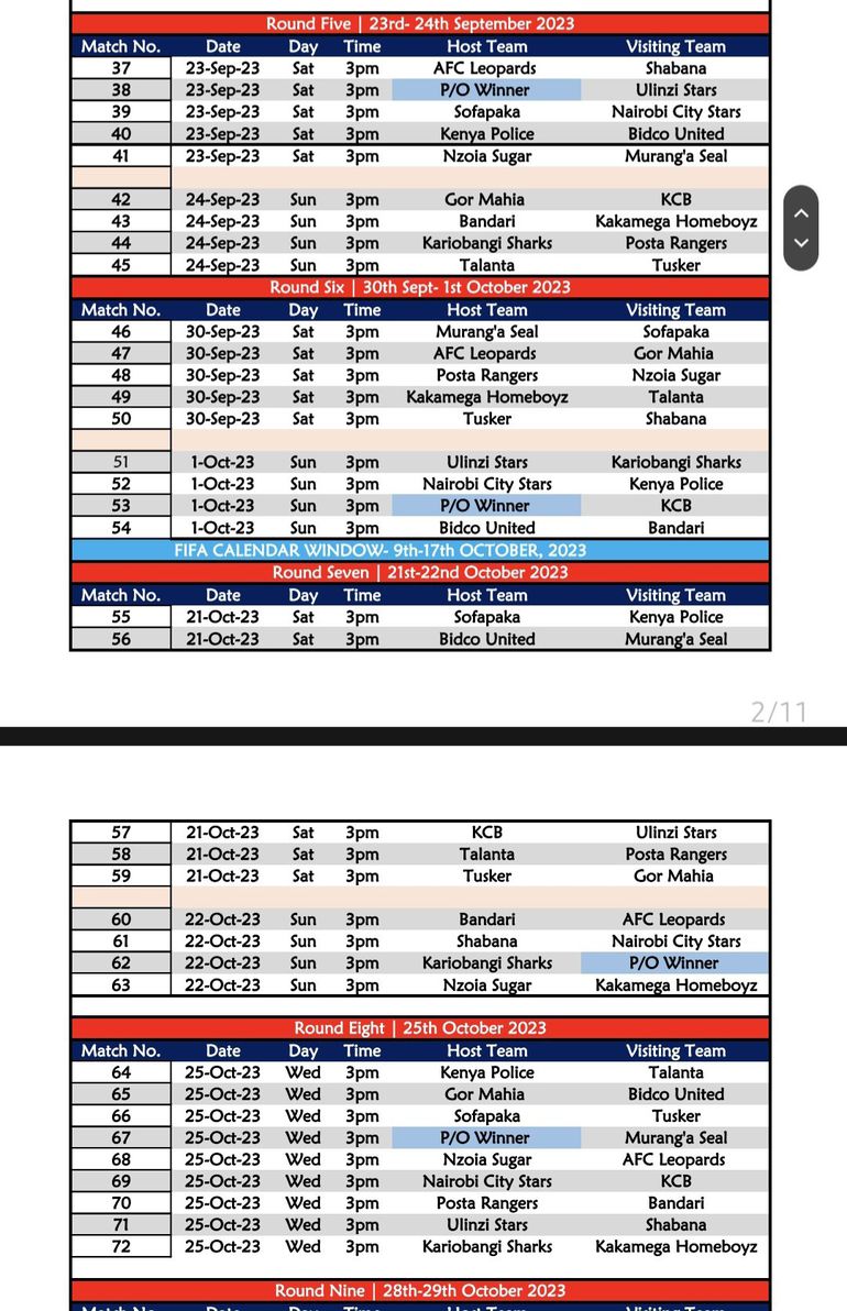The following day, four matches will be on show, including AFC Leopards’ first league tie at home to FC Talanta, Police hosting Murang’a while the winner of the promotion playoff between Migori Youth and Wazito FC will open their campaign against Nairobi City Stars.