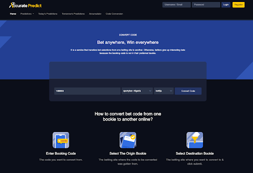 This is where Accuratepredict comes in, offering a seamless solution to this problem with the Bet Code Conversion on Accuratepredict website - this feature allows you to convert bet codes from one bookie to another.