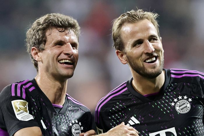 Thomas Muller and Harry Kane enjoy Bayern Munich’s win over Werder Bremen | X/@FCBayernEN