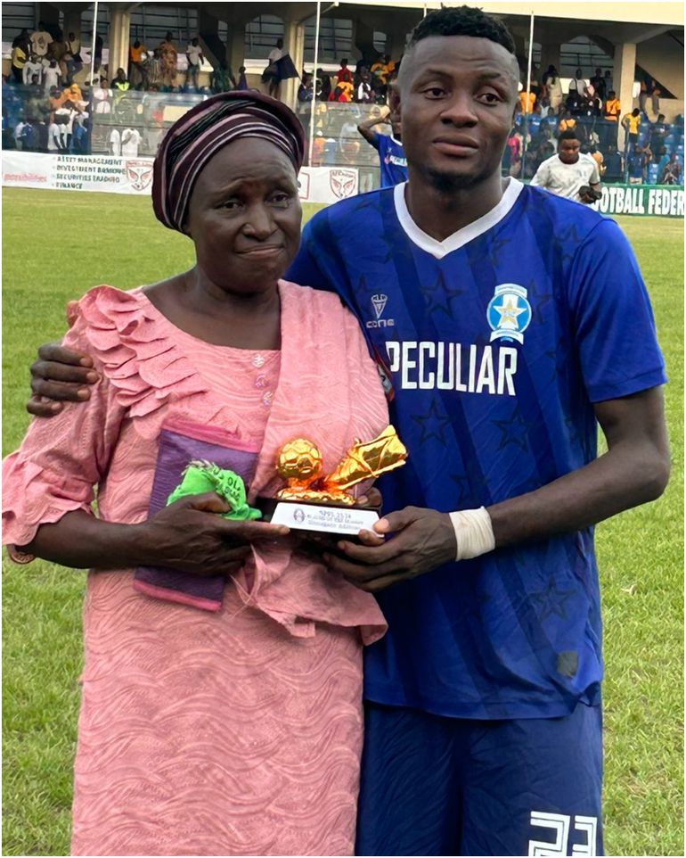 In a touching display of love and pride, Gbolagade Adelowo of Shooting Stars was captured in a poignant moment with his mother following his triumph as the Nigeria Premier Football League (NPFL) Player of the Season.