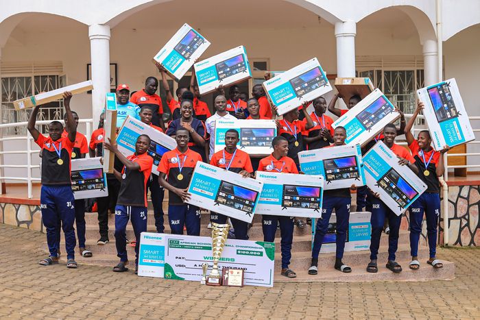The triumphant boys were recieved in jubilation and each walked away with a cash prize and a 32" Smart TV courtesy of the Executive Director - Dr. Lawrence Mulindwa. pic.twitter.com/gLV4xYc6AI