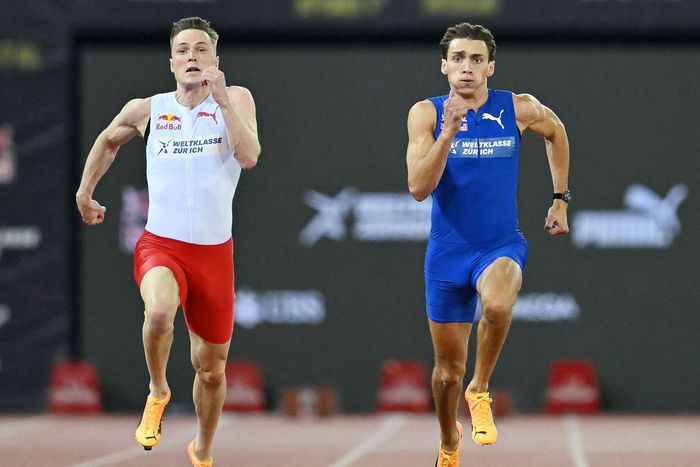 However, on this day, he swapped his pole vaulting gear for sprinter’s spikes in a friendly face-off against Norway’s Warholm, the formidable 400-meter hurdles world record holder.