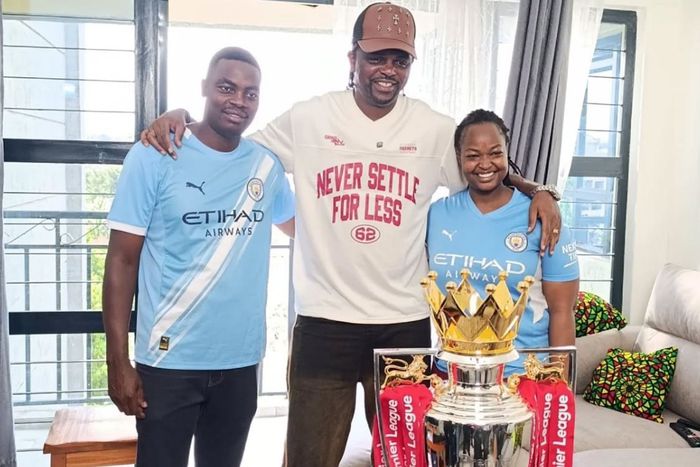 One of EPL fans Daniel Nzuki, a resident of Ruaka in Kiambu County, got a surprise when an ordinary day until a knock on his door turned it into a once-in-a-lifetime moment. The moment he opened it, he was stunned to find the Nigerian football icon holding the 24-karat silver gilt trophy.