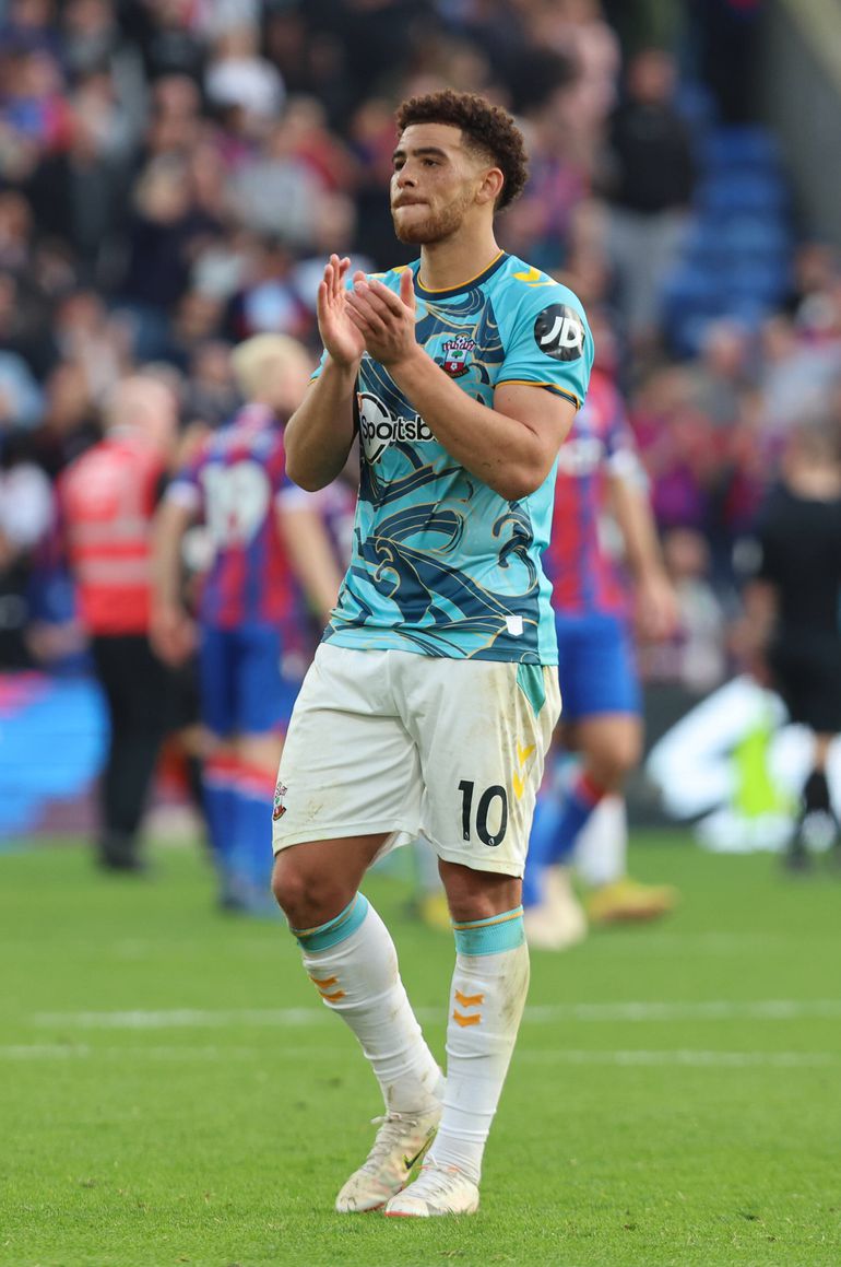 Southampton FC forward Che Adams (10) thanking the Southampton FC supporters following the Premier League match between Crystal Palace and Southampton at Selhurst Park on October 29, 2022.