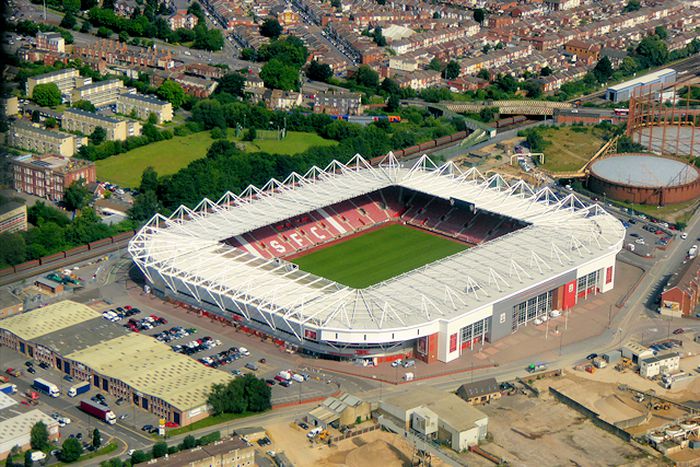 An aerial view of Saint Mary's Stadium, home to Southampton FC.