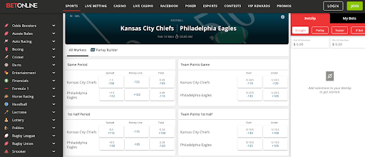 BetOnline: Get a 50% bonus on your deposit, up to $250, for Super Bowl betting.