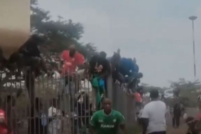 Fans jump over the fence accessing the Kasarani stadium illegally ahead of the Kenya vs Morocco match pic.twitter.com/SgGYDyMux4