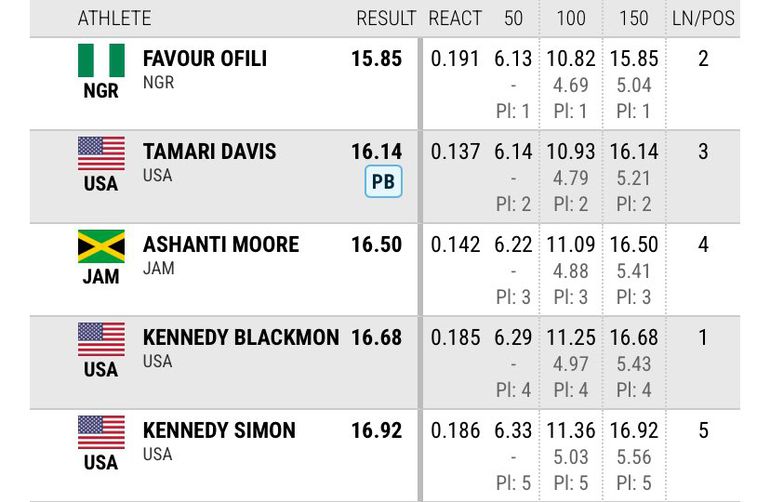 For context, Ofili's 100m split time has been recorded at 10.82s, meaning she's well in range to break Blessing Okagbare's Nigerian Record of 10.79s, and perhaps challenge the African Record (10.72s) as the season progresses.